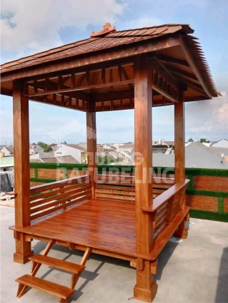 Material alami yang memberikan kesan hangat dan klasik, cocok untuk desain gazebo tradisional maupun modern dengan daya tahan yang baik jika dirawat dengan tepat.