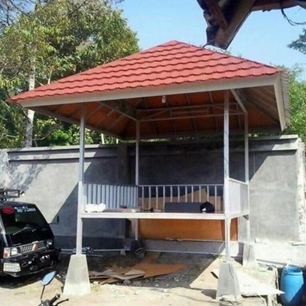 Memberikan kesan kokoh dan tahan lama, ideal untuk gazebo permanen dengan desain klasik atau rustic, serta minim perawatan dibanding material lainnya.